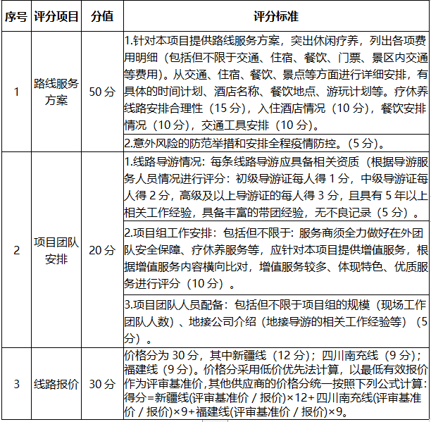 2.比選內(nèi)容:采購(gòu)3家療休養(yǎng)服務(wù)供應(yīng)商,比選邀請(qǐng)范圍為臺(tái)州市星級(jí)品質(zhì)旅行社名錄內(nèi)四星級(jí)以旅行社和市屬?lài)?guó)企平臺(tái)的旅行社。